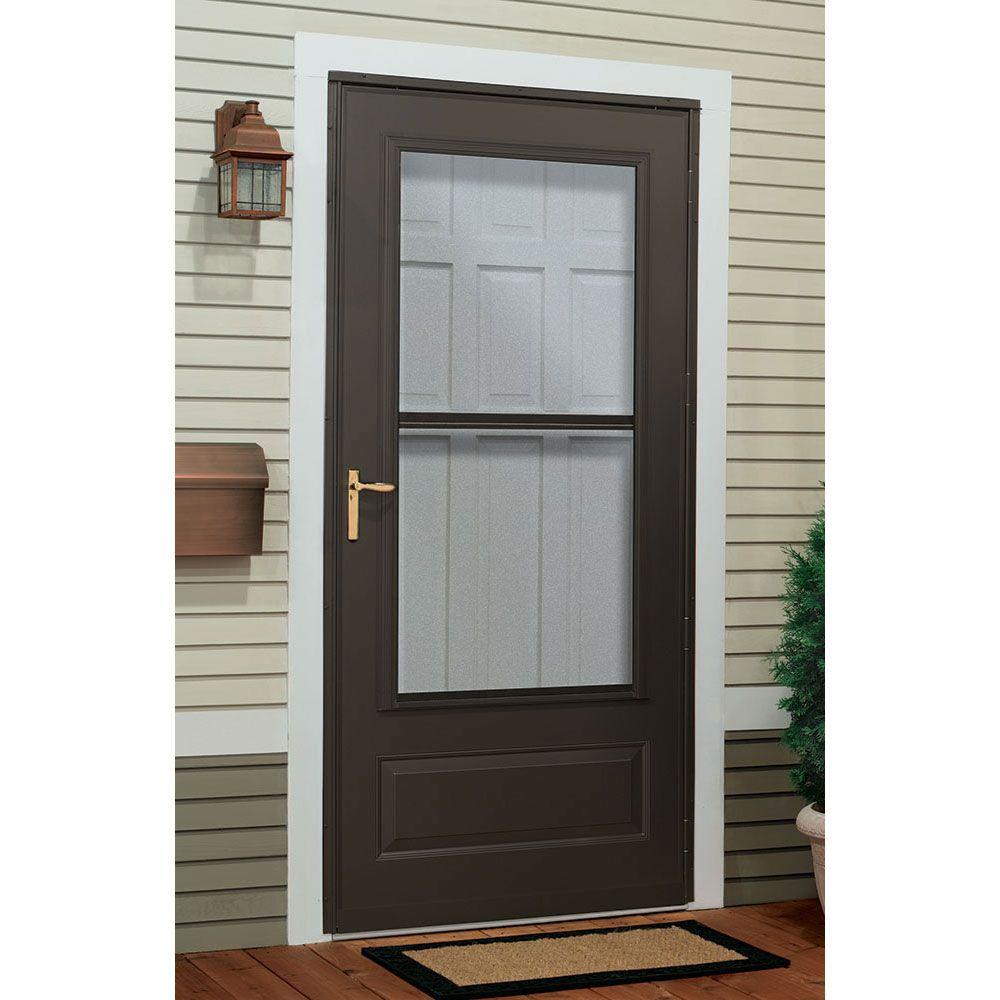 Emco 400 Series 3 4 View Self Storing Aluminum Storm Door The Home Depot Aluminum Storm Doors Storm Door Doors
