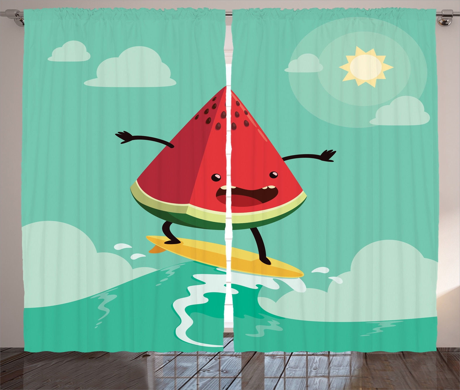 Surf Decor Curtains 2 Panels Set Cute Watermelon Riding The Waves Surfing In The Ocean Popular Summer Activity Living Room Bedroom Accessories By Ambesonne Walmart Com Walmart Com