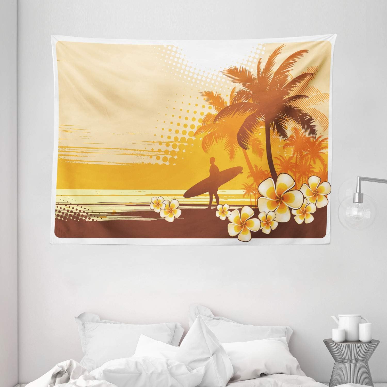 Amazon Com Ambesonne Surf Decor Collection Silhouette Of A Surfer And Tropical Landscape Free Your Mind Artsy Illustration Bedroom Living Room Dorm Wall Hanging Tapestry 80 X 60 Inches Yellow Brown Orange Home