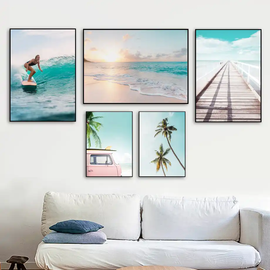 Pintura Nordica Para Decoracao Arte De Parede Com Ponte Surf Para Menina Praia Paisagem Pintura Em Tela Posteres E Impressoes Decoracao Para Sala De Estar Pintura E Caligrafia Aliexpress