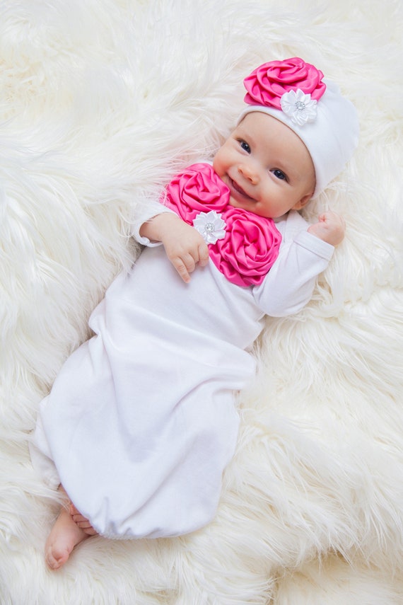 Girls Personalized Newborn Take Me Home Outfit Gown And Headband Set Personalized Baby Girl Clothes Baby Girl Layette Baby Outfits Newborn