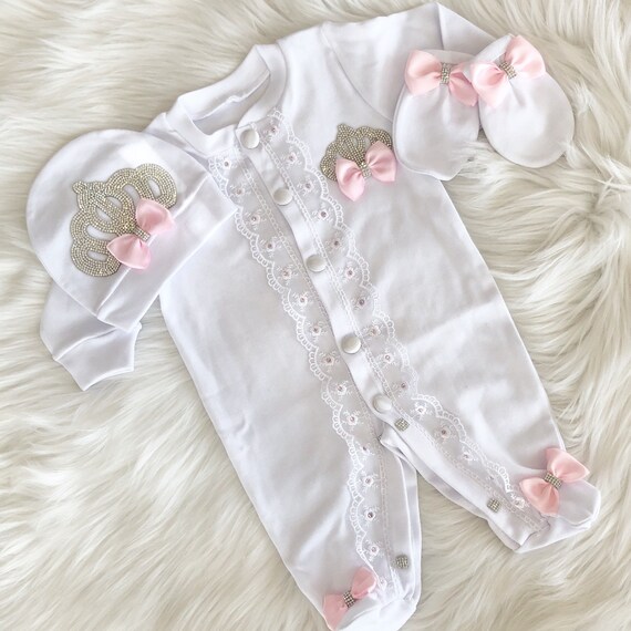 Baby Girl Take Me Home Outfit Set 0 3 Month With Princess Jewels Ebay