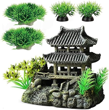 Amazon Com Fish Tank Decorations Aquarium Decoration Medium Sized 6 3inch Tall Ornaments Accessories Fish Hides Retro Asia Style House House A Pet Supplies