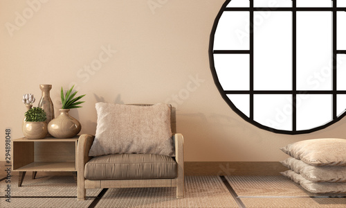 Interior Design Modern Living Room With Chair Floor Tatami Mat And Traditional Japanese 3d Rendering