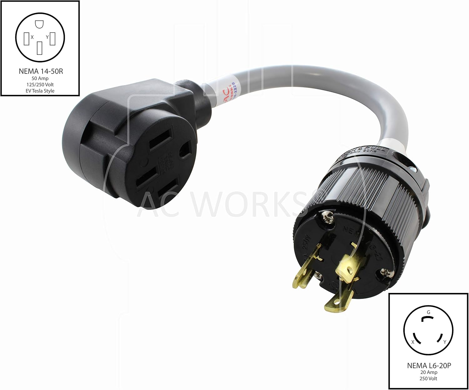 Amazon Com Ac Works Electric Vehicle Charging Adapter For Tesla Use L6 20 20a 250v Locking To Tesla Home Improvement