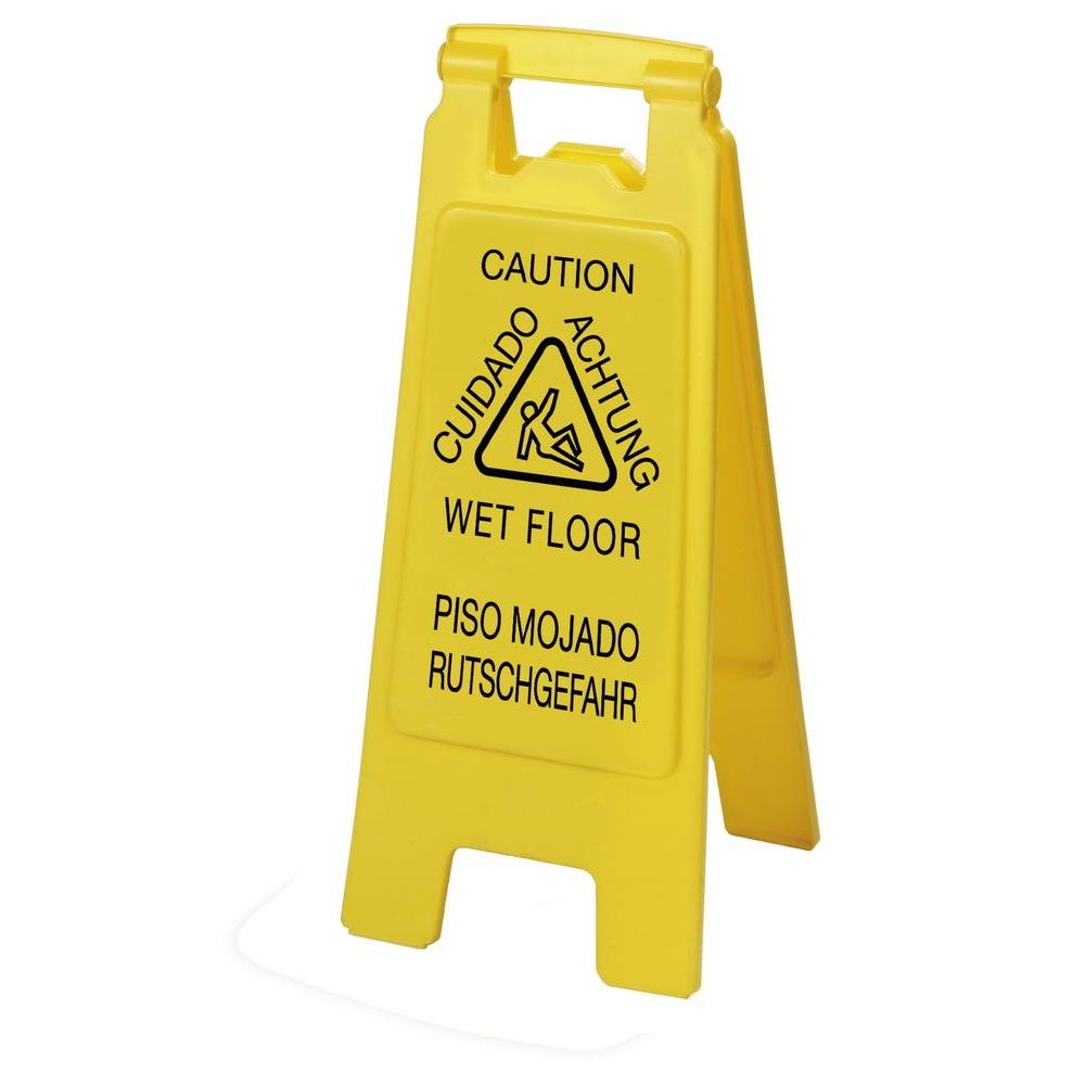 Carlisle English Spanish German Yellow Wet Floor Sign 6 Pack 3690904 The Home Depot
