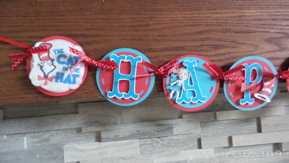 Cat In The Hat Birthday Banner Dr Seuss Birthday Banner Etsy