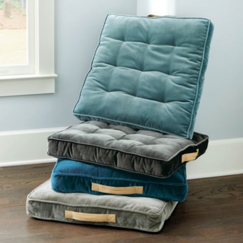 Velvet Floor Pillow Teal Blue Green Tufted Floor Cushion Etsy