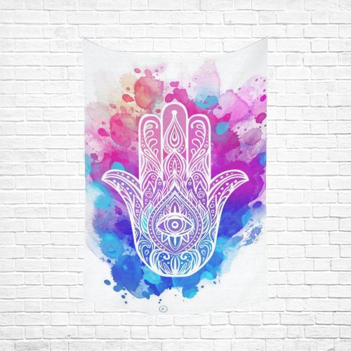 Interestprint Colorful Watercolor Buddha Hamsa Hand Tapestry Wall Hanging Indian Ethnic Blue Purple Wall Decor Art For Living Room Bedroom Dorm Cotton Linen Decoration