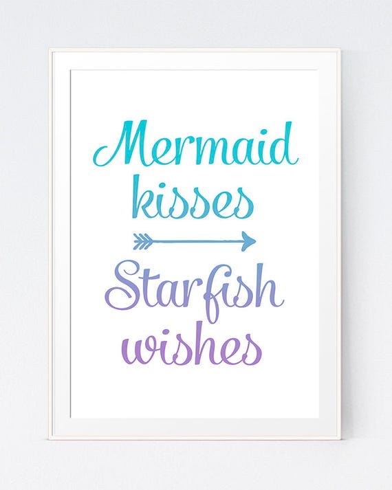 Purple Turquoise Wall Print Mermaid Kisses And Starfish Etsy