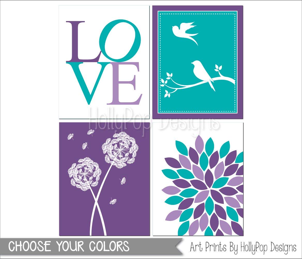 Amazon Com Tween Girl Bedroom Wall Art Purple Turquoise Toddler Girls Room Wall Art Baby Girl Nursery Art Custom Colors Multiple Sizes Available Set Of 4 Unframed Art Prints 0847 Handmade