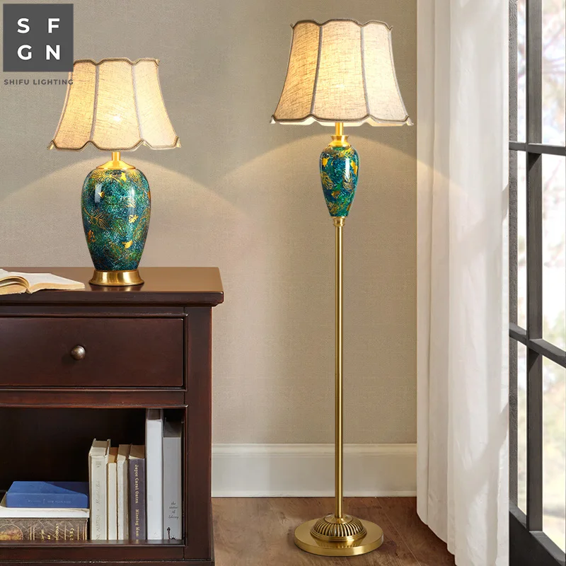 American Style Floor Lamp Modern Copper Fabric Lampshade Standing Lamp E27 Led Floor Lamps For Living Room Study Bedside Office Floor Lamps Aliexpress