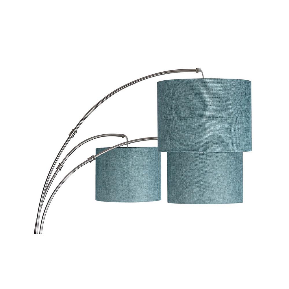 Grandview Gallery 84 In Brushed Nickel Floor Lamp With 3 Lights Arched Design And Turquoise Linen Shades Sf90447a The Home Depot