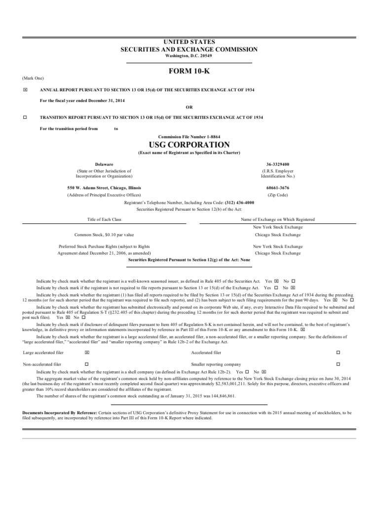 Usg 10 K Filing Fiscal Year 2015 Form 10 K Debt