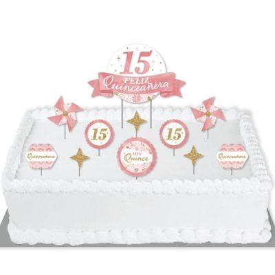 Mis Quince Anos Quinceanera Sweet 15 Birthday Party Cake Decorating Kit Feliz Quinceanera Cake Topper Set 11 Pieces Walmart Com Walmart Com