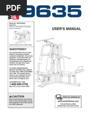 Weider Pro 9635 System Wesy9635 Users Manual Wesy96352 190003