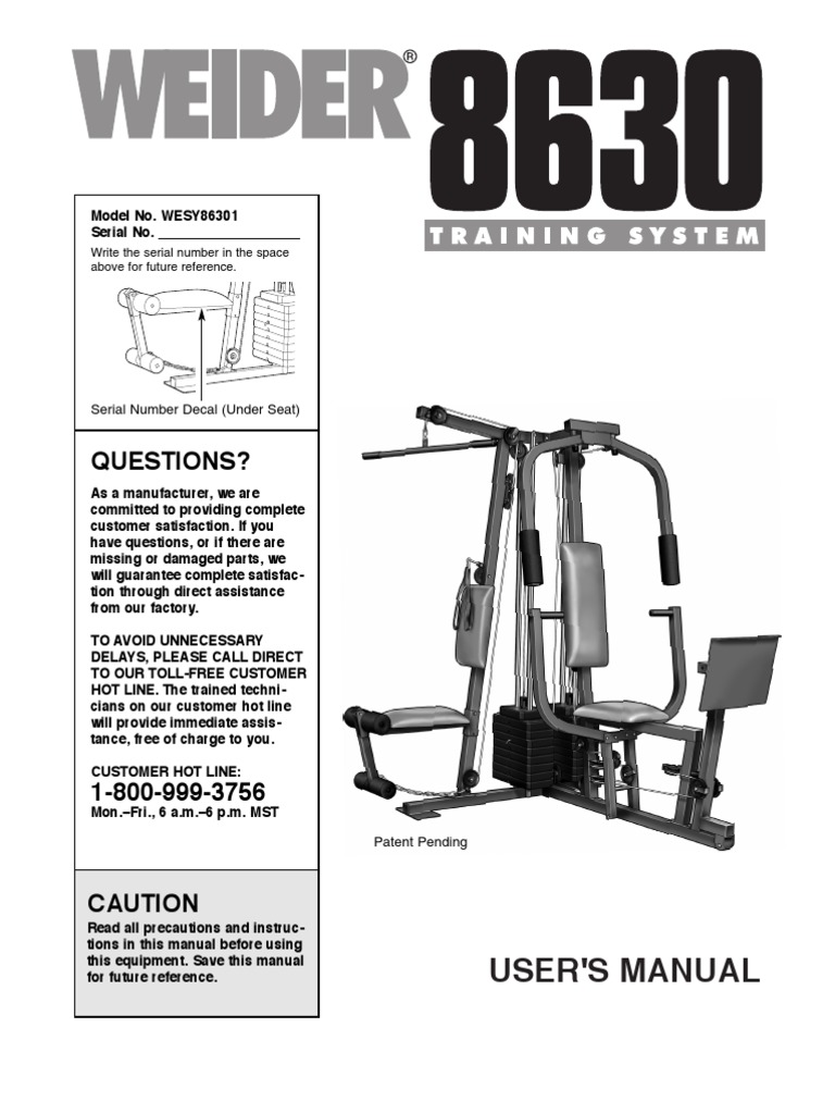 Download Weider 8530 Home Gym User Manual Djvu Before You Begin Weider 8530 User Manual Page 3 25