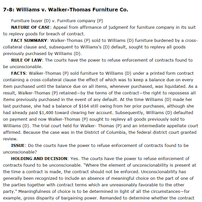 Williams V Walker Thomas Furniture Co Case Brief For Law Students Casebriefs