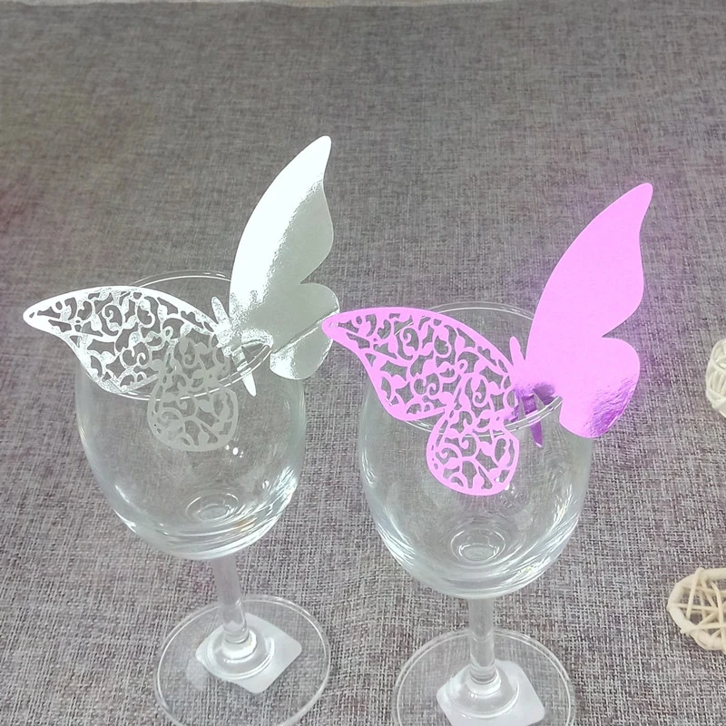 Some Wine Glasses Decorated With Paper Butterflies Stock Photo Alamy