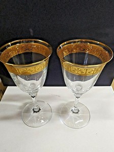 Interglass Italian Crystal Wine Glasses Vintage Design 24kt Gold Hand Decorated Luxury Goblets Set Of 2 Walmart Com Walmart Com