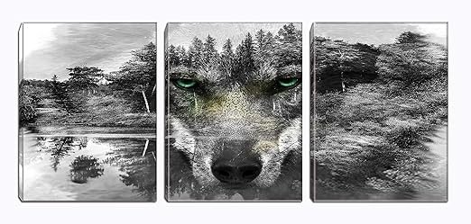 Amazon Com 3panels Black And White Wolf Wall Art With Green Eyes Animal Canvas Painting Picture Stretched And Framed For Living Room Bedroom Bathroom Office Decor Posters Prints