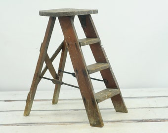 Vintage Wood 2 Step Ladder Short Old Wood Ladder Plant Stand Display Ladder Country Chic Farmhouse Decor Photo Prop Rhymeswithdaughter