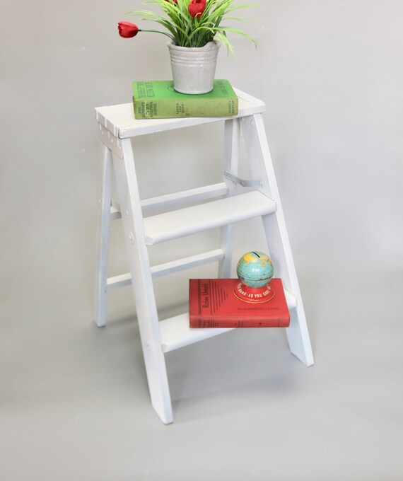 Wood Step Stool Farm Home Decor Plant Stand Country Home Decor Folding Step Ladder Cottage Chic Decorative Step Ladder Haute Juice