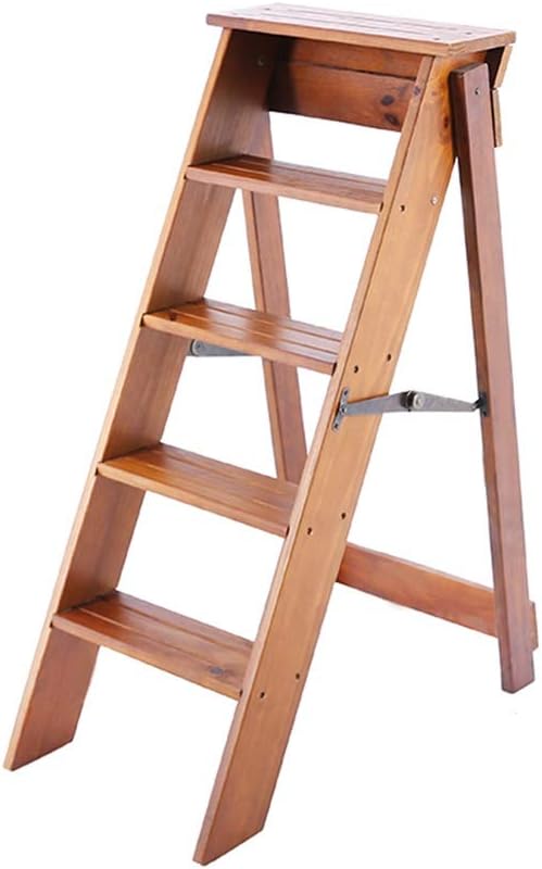 Amazon Com Hgxc Stepladder Folding Ladder Indoor Thickening Ladder Five Step Ladder Decoration Family Multi Function Household Solid Wood Color Yellow Home Kitchen
