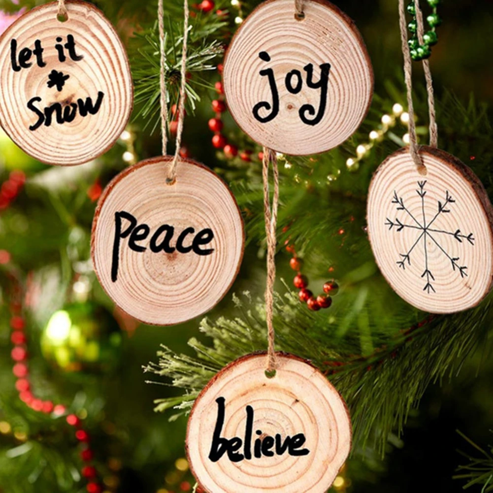 10pcs Wooden 2019 Christmas Decoration Mini Tree Log Slices Ornaments Hanging Cutout Circle Disks Crafts For Home New Year Party Diy Decorations Aliexpress