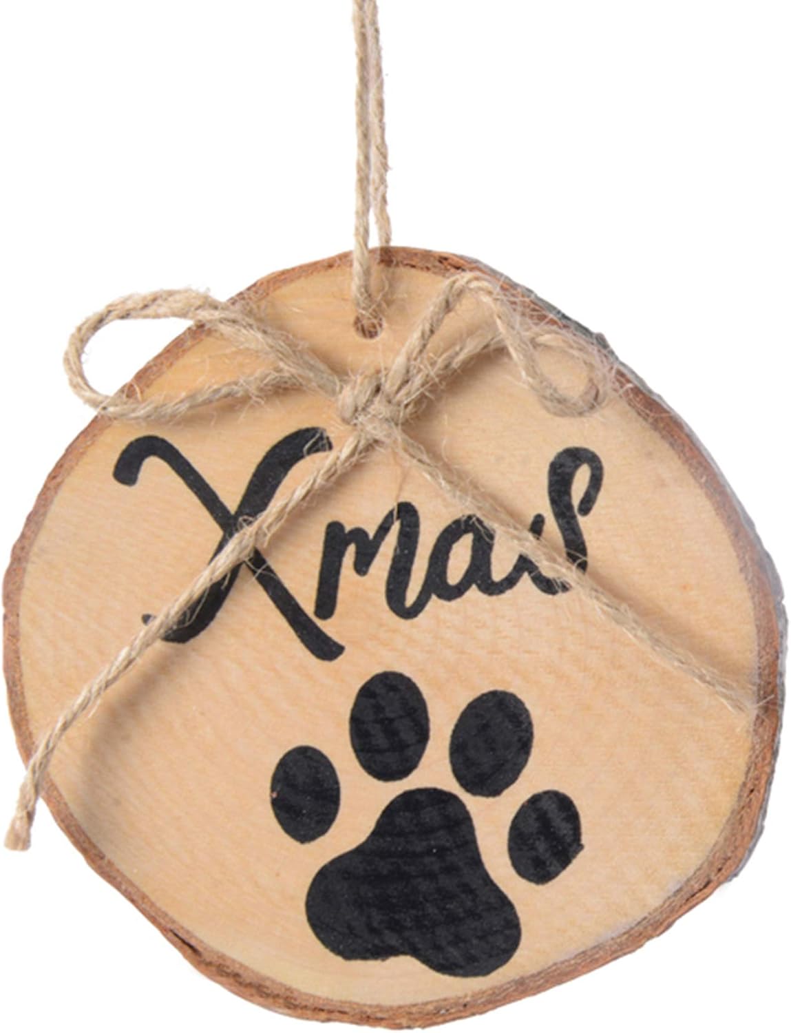 Amazon Com Trixes 2pc Rustic Round Wooden Cat Paw Christmas Decorations Gift Tags Log Piece With Twine For Pets Kitchen Dining