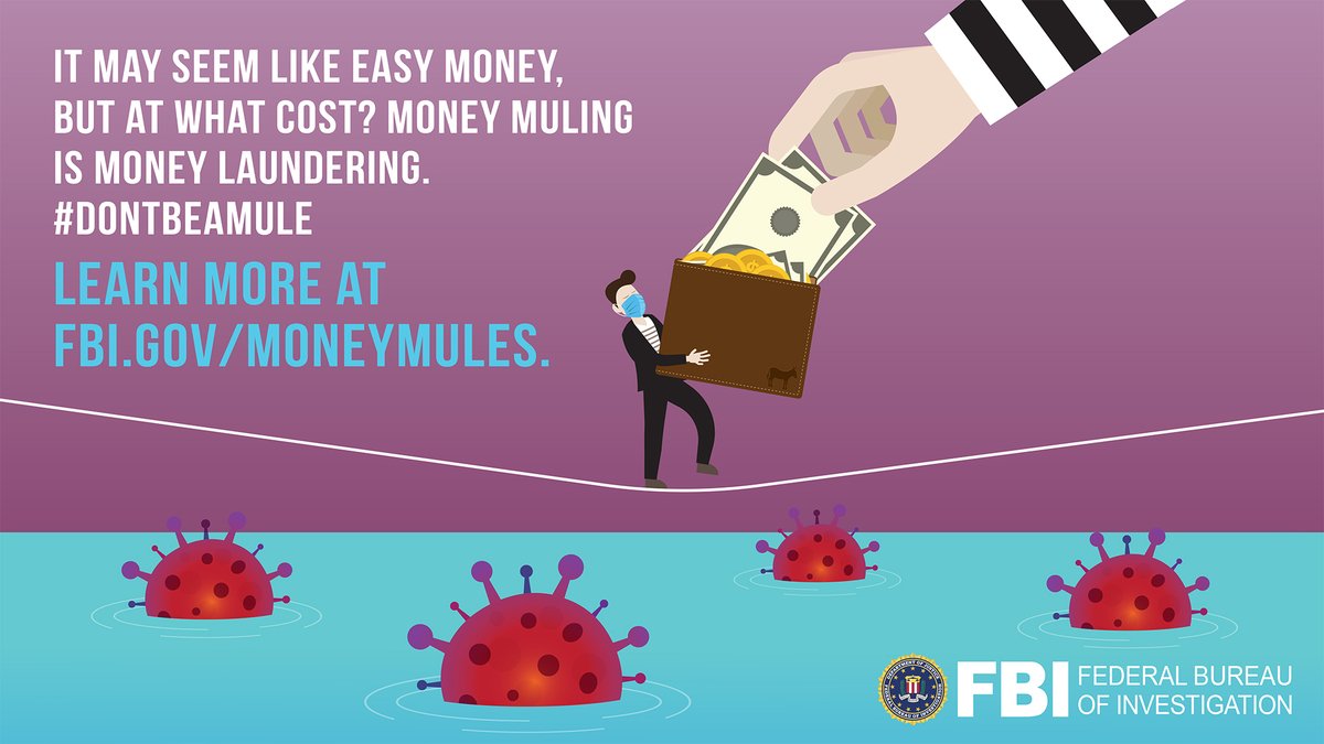 Fbi Tampa V Twitter With Large Numbers Of People Staying Home Fraudsters Are Increasingly Targeting People For Money Mule Scams Through Dating Websites And Work From Home Job Postings Learn More At Https T Co Bvg4ioubqd Dontbeamule