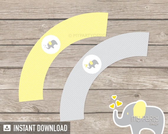 Elephant Cupcake Wrappers Elephant Baby Shower Decorations Yellow Grey Gender Neutral Decor Instant Download Printable Pdf By My Party Design Catch My Party