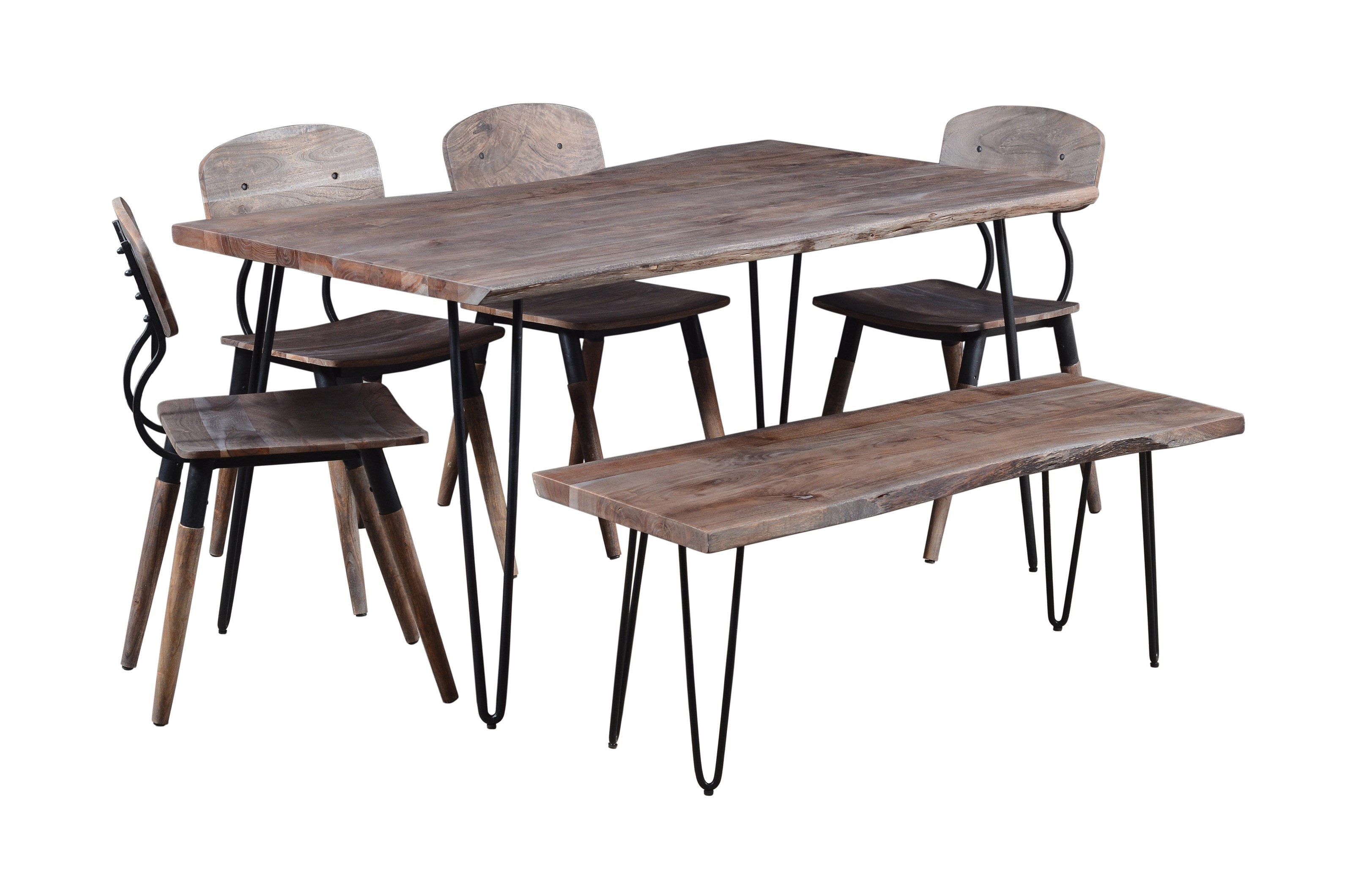 Jofran Nature S Edge 60 Dining Table With 4 Chairs And Bench Zak S Home Table Chair Set With Bench